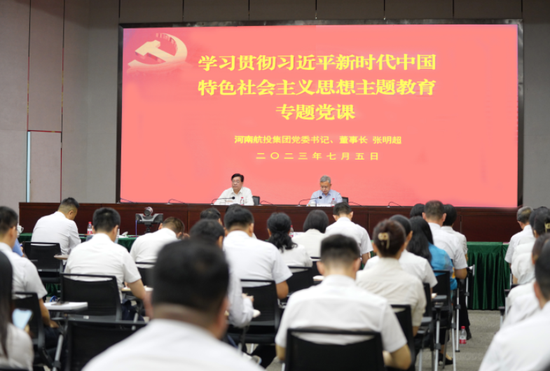 7月5日,河南航投集團(tuán)黨委書記、董事長張明超以“牢記囑托 不負(fù)使命 勇建新功”為題,為集團(tuán)全體黨員講專題黨課;總經(jīng)理、黨委副書記、副董事長李東棵主持。集團(tuán)領(lǐng)導(dǎo)班子成員、總部管理人員代表及各子公司主要負(fù)責(zé)人等80余人在主會(huì)場參學(xué)。黨課以“主會(huì)場+視頻分會(huì)場”方式進(jìn)行。