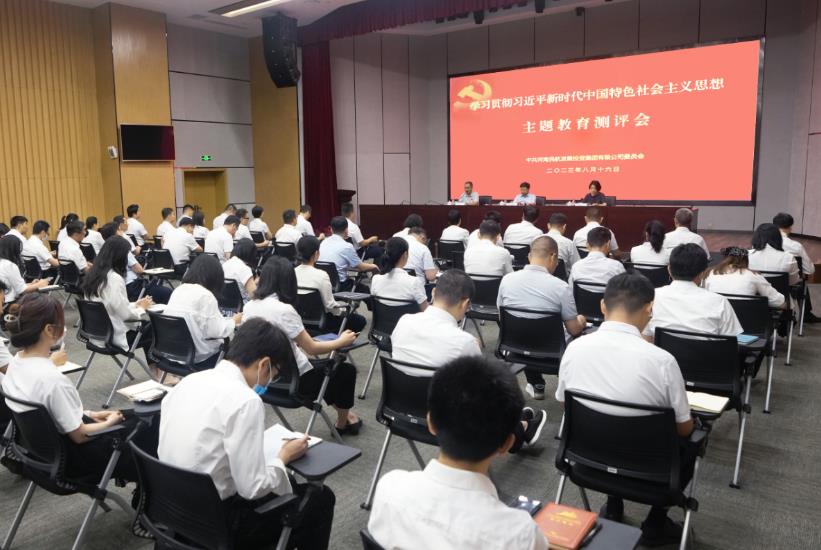 學習研討后,在指導組指導下,河南航投黨委召開主題教育評估測評會。集團黨員領導干部、普通黨員及非黨員共計100人參加測評。