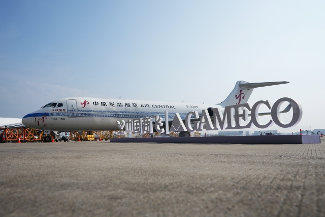 10月30日,中國(guó)商飛在廣州向河南航投集團(tuán)交付ARJ21客改貨飛機(jī)。作為啟動(dòng)用戶,這也是河南航投收到的首架ARJ21客改貨飛機(jī)。中國(guó)商飛黨委書記、董事長(zhǎng)賀東風(fēng)向集團(tuán)黨委書記、董事長(zhǎng)張明超移交交付紀(jì)念鑰匙。中國(guó)商飛黨委副書記、董事譚萬庚,中原龍浩航空董事長(zhǎng)郭建業(yè)等致辭,中國(guó)商飛黨委常委、副總經(jīng)理、總會(huì)計(jì)師吳永良向河南航投租賃頒發(fā)飛機(jī)銷售證,民航中南局副局長(zhǎng)陳維向中原龍浩航空頒發(fā)單機(jī)適航證、國(guó)籍登記證、無線電臺(tái)證。中國(guó)商飛黨委常委、副總經(jīng)理張玉金主持儀式。