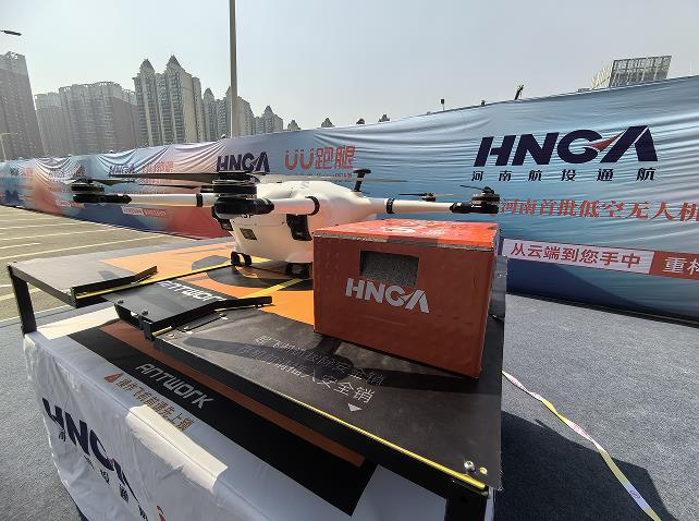5月18日上午10時許,一架物流無人機(jī)從河南科技市場數(shù)碼港垂直升空,12分鐘后按既定路線平穩(wěn)降落在新天地通訊大廈,河南首條低空無人機(jī)物流配送航線成功首飛。