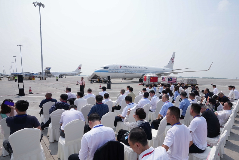8月25日上午,吉隆坡-鄭州鮮食榴蓮首航接機(jī)儀式在鄭州機(jī)場舉行,馬來西亞首批鮮食榴蓮進(jìn)入中國市場,中馬航空貨運(yùn)樞紐項目加速推進(jìn)。中豫航空集團(tuán)黨委書記、董事長張明超,總經(jīng)理、黨委副書記、副董事長柳建民;馬來西亞駐華大使館工作人員,馬來西亞榴蓮廠商公會代表和榴蓮貿(mào)易供應(yīng)鏈企業(yè)代表參加了儀式。