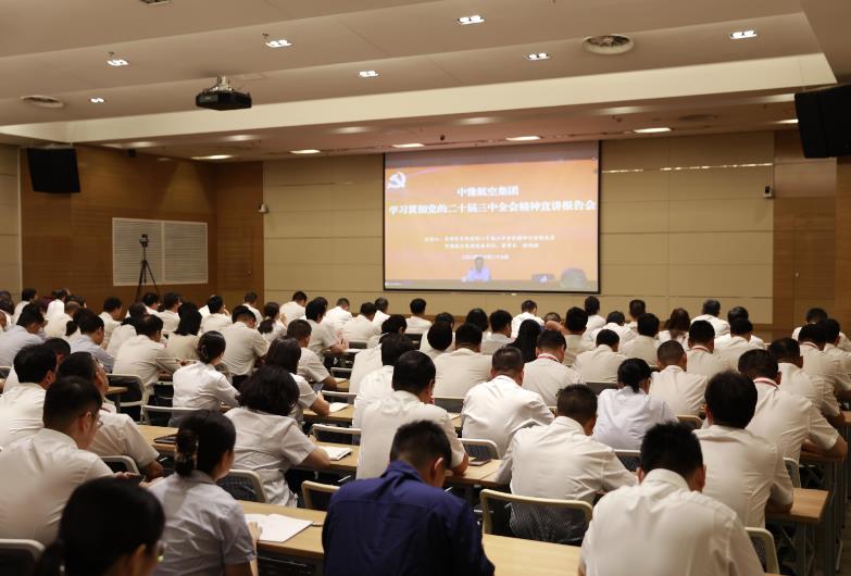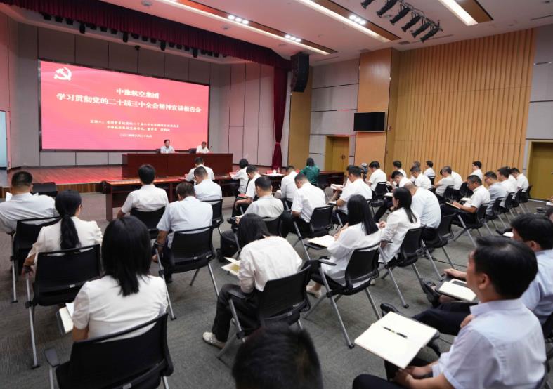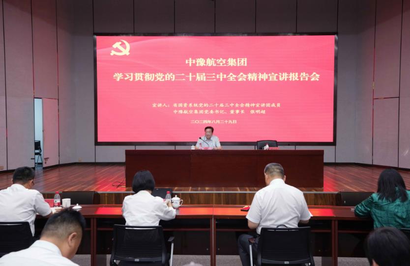 8月29日,按照省委和省政府國(guó)資委黨委部署,中豫航空集團(tuán)舉行學(xué)習(xí)貫徹黨的二十屆三中全會(huì)精神宣講報(bào)告會(huì)。省國(guó)資系統(tǒng)宣講團(tuán)成員,中豫航空集團(tuán)黨委書(shū)記、董事長(zhǎng)張明超作宣講報(bào)告,黨委副書(shū)記、總經(jīng)理、副董事長(zhǎng)柳建民主持會(huì)議,集團(tuán)領(lǐng)導(dǎo)班子在鄭成員、中層管理人員、青年員工代表約300人參會(huì)。