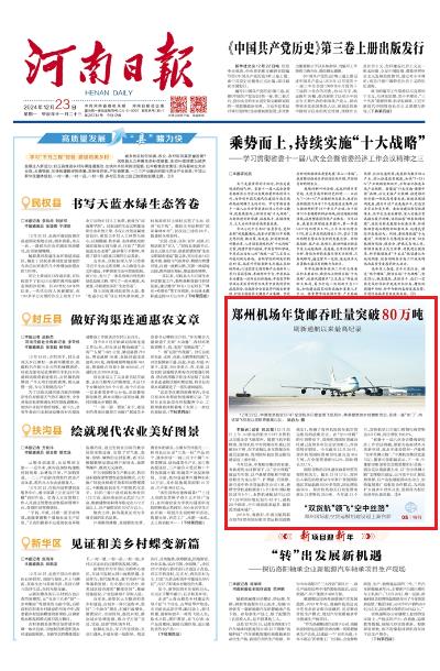 2018年,省政府、中國民航局聯(lián)合發(fā)布《鄭州國際航空貨運(yùn)樞紐戰(zhàn)略規(guī)劃》,明確了鄭州機(jī)場(chǎng)國際航空貨運(yùn)樞紐的戰(zhàn)略定位。在“空中絲路”的引領(lǐng)帶動(dòng)下,鄭州機(jī)場(chǎng)國際貨郵吞吐量已連續(xù)多年位居全國第五,外向型特征明顯。今年截至12月20日,鄭州機(jī)場(chǎng)國際貨郵吞吐量完成45.6萬噸,占全部貨量的57.2%,同比增長(zhǎng)22.1%。