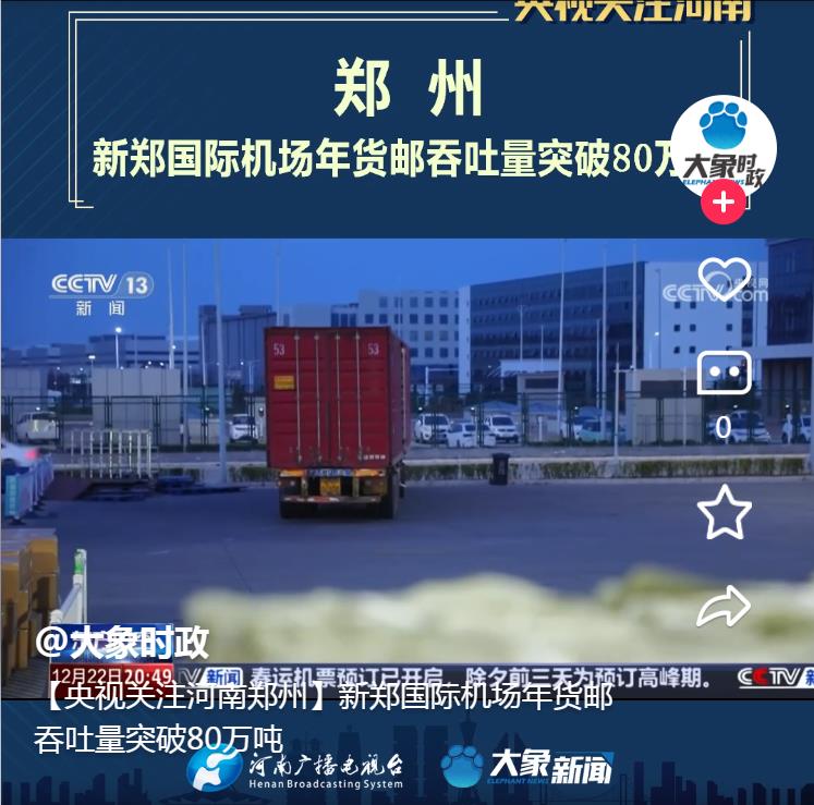 【央視關(guān)注河南】新鄭國(guó)際機(jī)場(chǎng)年貨郵吞吐量突破80萬(wàn)噸