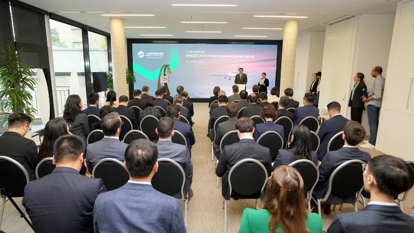 當?shù)貢r間6月21日上午,中豫航空集團以河南航投為主體發(fā)行的3年期人民幣境外債券上市儀式在盧森堡證券交易所舉行。這是中國企業(yè)在歐洲發(fā)行的首支支持可持續(xù)航空燃料(SAF)的綠色債券,也是河南企業(yè)發(fā)行的首支離岸人民幣綠色債券,鄭盧“空中絲路”資金融通實現(xiàn)新突破。