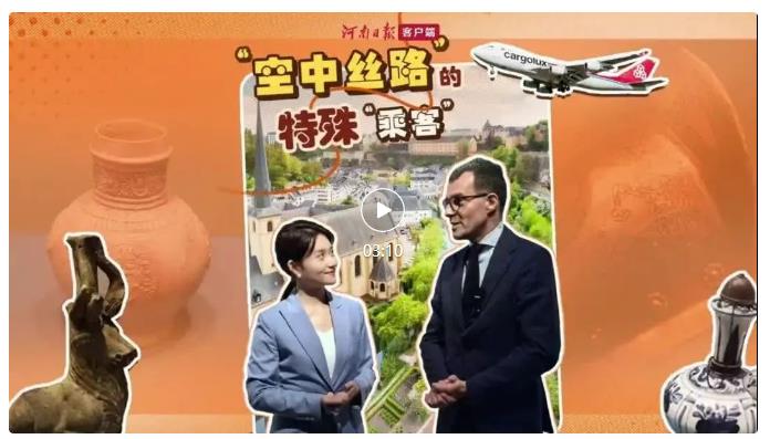 從2013年至今,鄭盧“空中絲路”的建設(shè)在兩國(guó)元首的關(guān)注下取得豐碩成果。從兩家企業(yè)的投資合作,發(fā)展到中盧之間的商貿(mào)往來、綠色能源、客運(yùn)旅游、人文交流等各方面。2018年,河南航投與河南省文物局簽署合作意向書,根據(jù)約定,河南航投將提供航空運(yùn)輸便利,共同促進(jìn)河南文物的對(duì)外開放和交流、促進(jìn)兩地民心相通,由鄭盧“空中絲路”保障了河南文物從鄭州抵達(dá)盧森堡。當(dāng)年11月在盧森堡開展時(shí),米歇爾·波費(fèi)爾主持了開幕式,河南航投與盧森堡貨航負(fù)責(zé)人一同出席,豫盧雙方在現(xiàn)場(chǎng)達(dá)成深化文化交流的意愿。