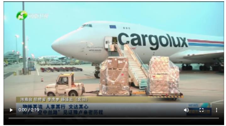 河南航投盧森堡項(xiàng)目管理部總經(jīng)理 史彬彬:這張照片是鄭州-盧森堡空“中絲綢之路”的貨運(yùn)量突破了100萬噸,中方的投資收益超過100億元,實(shí)現(xiàn)了雙百這樣一個(gè)答卷。這張照片是我們當(dāng)時(shí)客運(yùn)航線首飛,盧森堡的駐華大使,他搭乘了這條首飛航線回國去述職。